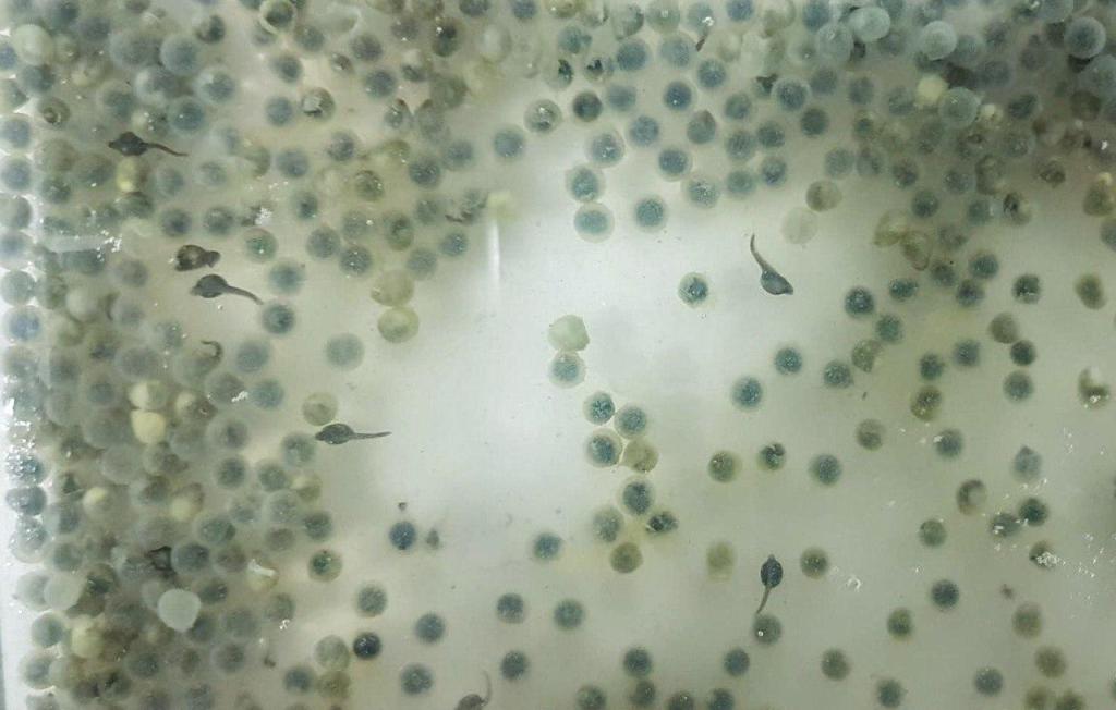 After approximately a week from the reproductions, the first eggs started to hatch. The larvae are very different from the adults: it is evident the yolk sac that will be their first source of sustenance and will be reabsorbed in the next few days.