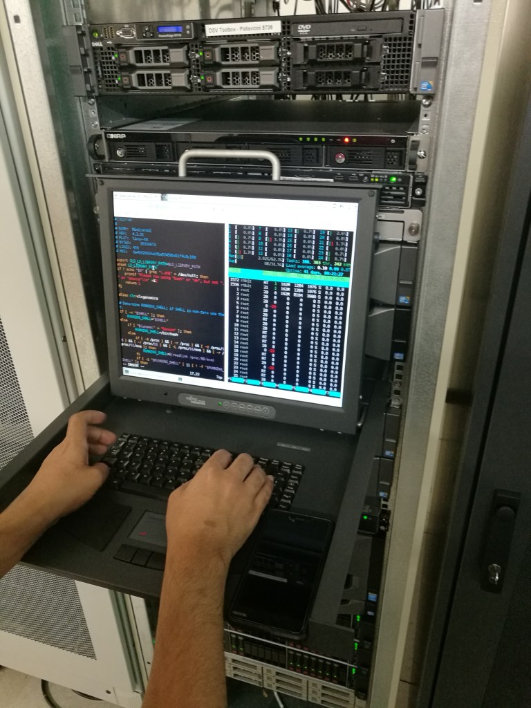 On a very hot day in mid-August, a new data storage unit Dell PowerVault MD3060e has been finally delivered at the Department of Life Sciences in Trieste. We are currently working on the installation of this unit in the server room, which is not just requiring technical skills, but also a good amount of physical exercise for the PhD students who kindly provided their help (this “beast”, with a full set of hard drives, weights almost 100 Kg!).