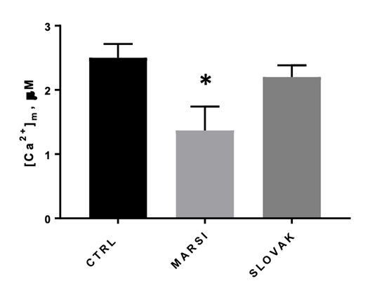 We obtained oral biopsies of the Marsican brown bear (small population) and the European brown bear (here the large Slovakian population was used as a control) to proliferate fibroblasts (live cells) in laboratory. Cell cultures were successfully established and maintained. Standard canine cell cultures and the original brown bear cell cultures described above were used to test in vitro the metabolic impact of mutations in the mitochondrion that are present only in the Marsican bear and at the homozygous state in all of its individuals and were predicted to be deleterious according to bioinformatic analyses. These tests were performed transfecting the cells with plasmids carrying the mutation(s) of interests; mitochondrial bioenergetic and cellular functions were measured as fitness proxies. Our results indicated that the standard canine cells with and without an overexpression of the ND5 gene carrying the mutations typical of the European Brown bear (large population) show a similar calcium concentration, membrane potential, and reactive oxygen production, whereas cell cultures transfected with the Marsican mutations show a decrease of the first two parameters and an increase of the last one (Figure). These results point towards a less efficient mitochondrial respiration and energy production in the smaller Marsican population. Similar differences were observed when cell cultures obtained from the Marsican and the European bears were directly compared. We are continuing these cellular experiments in bears to investigate functional mitochondrial parameters and the specific effect of single deleterious mutations on fitness more in detail. We will keep you posted on this blog.